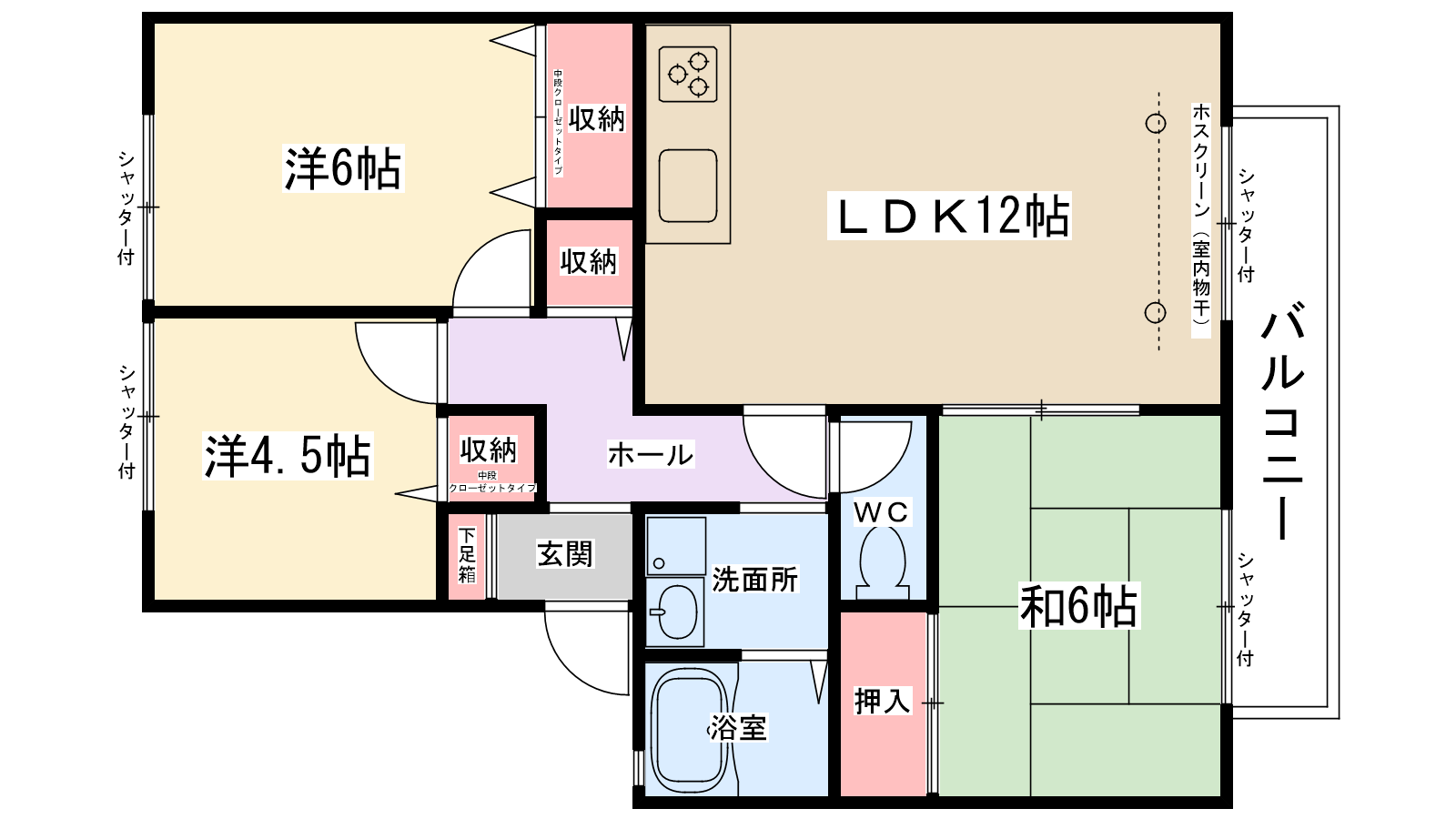 間取り | 3LDK | 専有面積 | 65.41㎡ | 構造 | 軽量鉄骨 | 築年数 | 平成5年9月 |