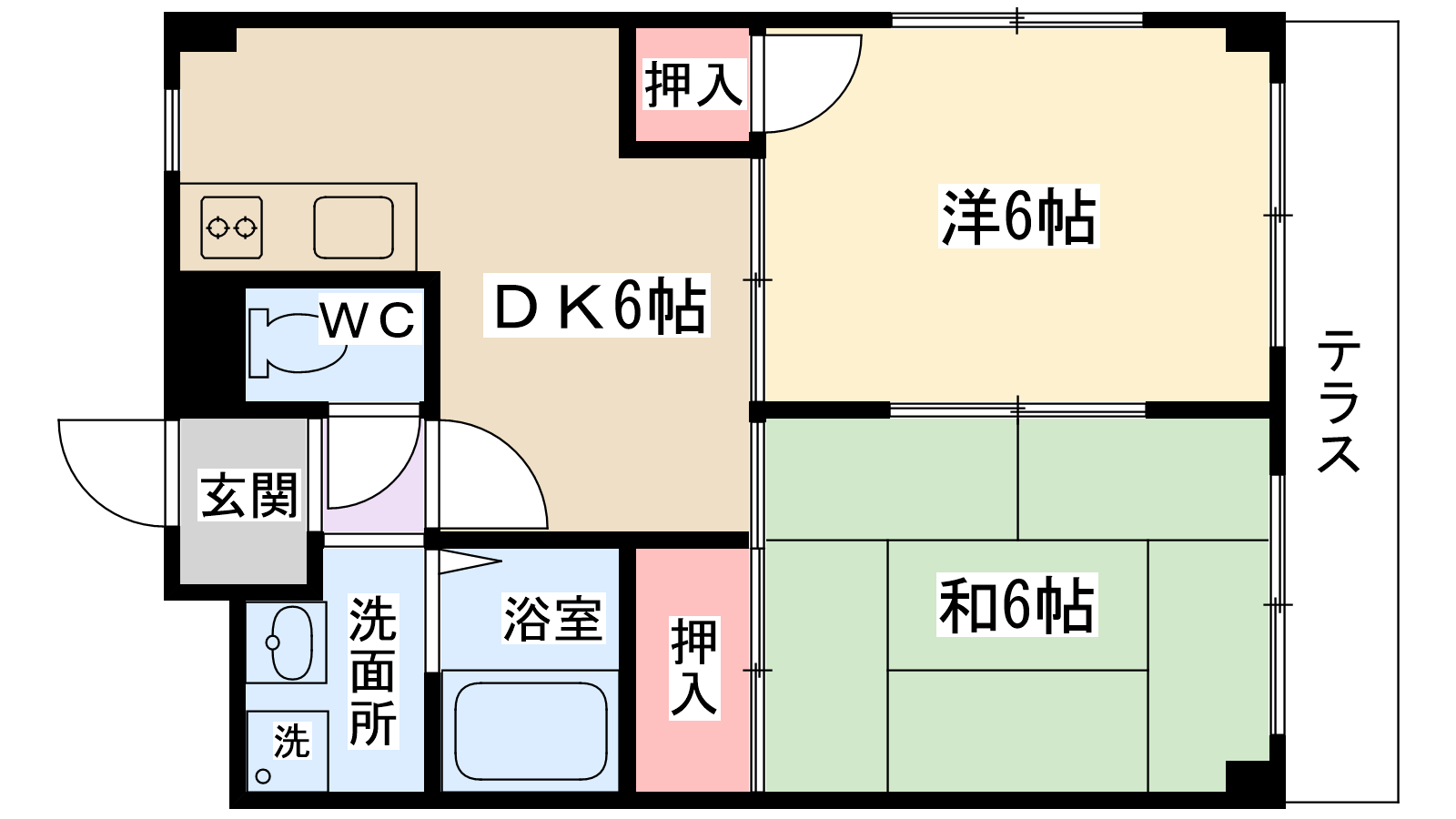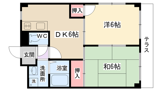間取り内訳 | 洋室6帖・和室6帖・DK6帖 | 駐車場 | 敷地内あり 7,000円 |