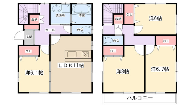 間取り内訳 | LDK11帖・洋室8帖・洋室6.7帖・洋室6.1帖・洋室6帖 | 駐車場 | 敷地内あり(1台分付き) |