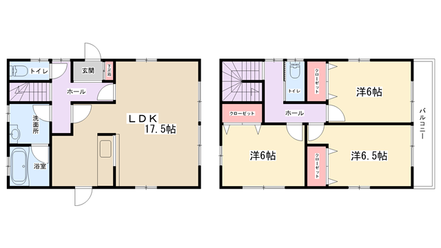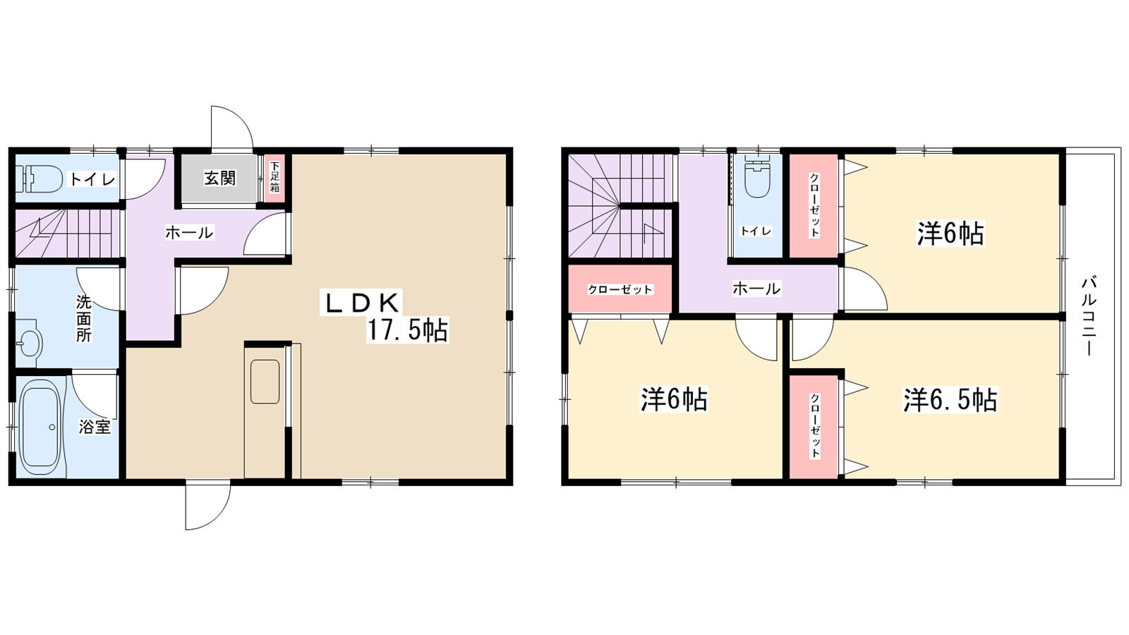 間取り内訳 | LDK17.5帖・洋室6.5帖・洋室6帖・洋室6帖 | 駐車場 | 敷地内あり(1台分付き) |
