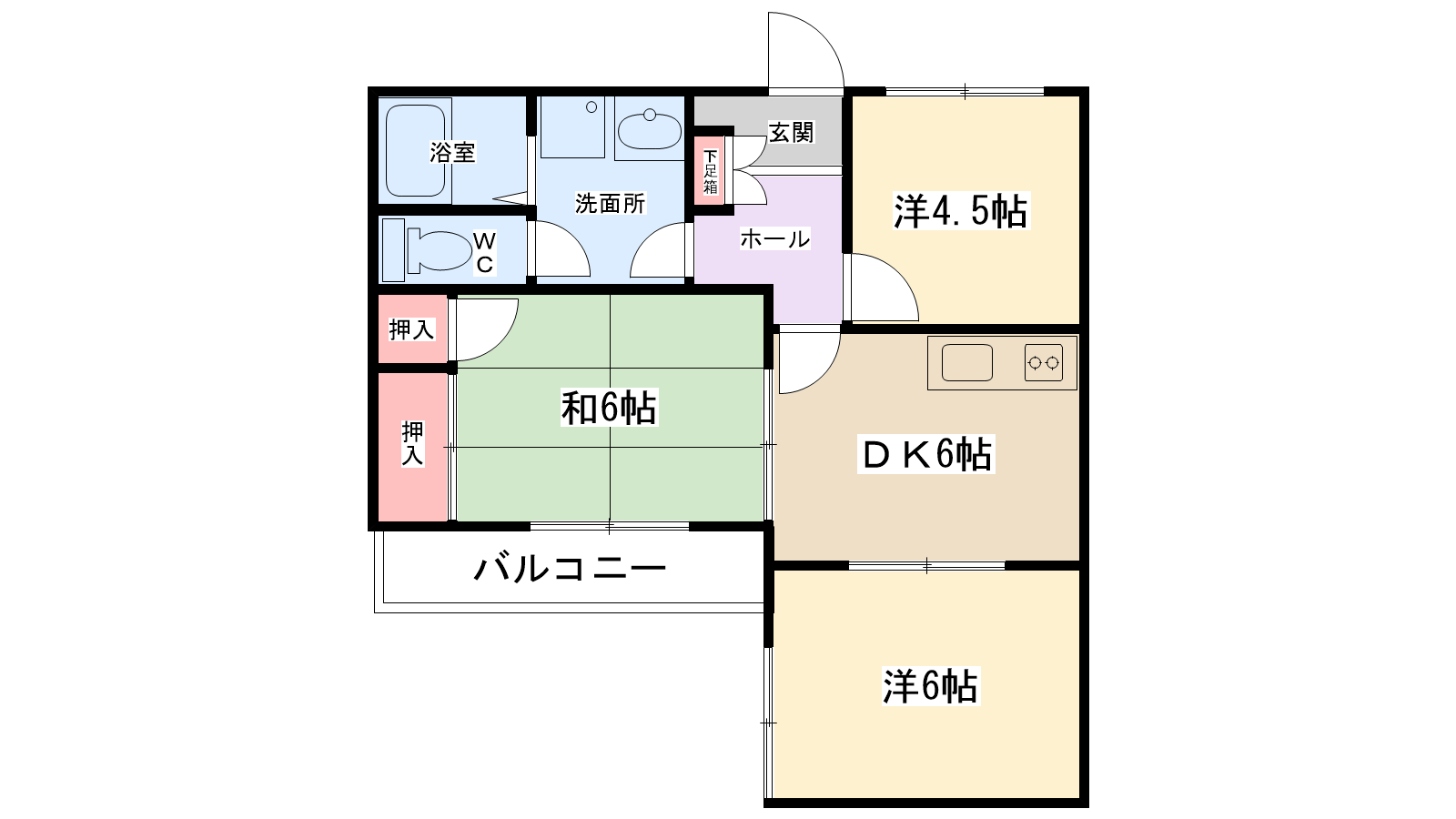 間取り内訳 | 和室6帖・洋室6帖・洋室4.5帖・DK6帖 | 駐車場 | なし |