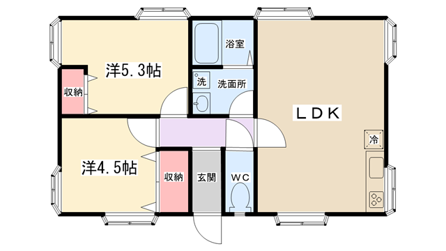 間取り内訳 | 洋室5.3帖・洋室4.5帖 | 駐車場 | なし |