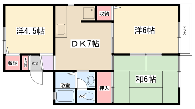 間取り内訳 | 和室6帖・洋室6帖・洋室4.5帖・DK7帖 | 駐車場 | 敷地内あり 6,000円 |