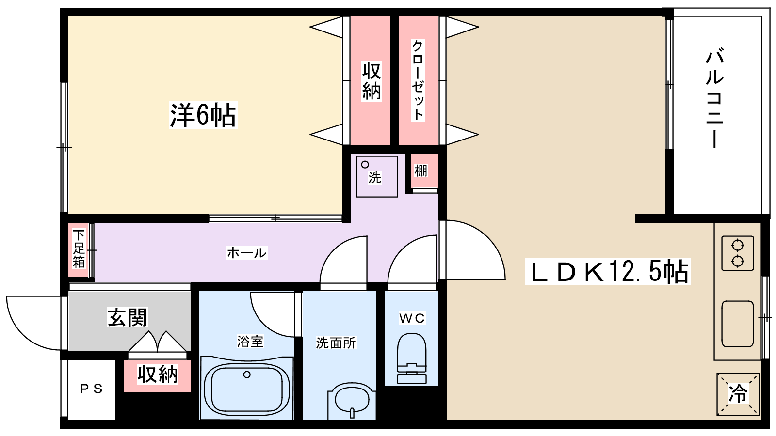 間取り内訳 | LDK12.5帖・洋室6帖 | 駐車場 | 敷地内あり 7,700円 |