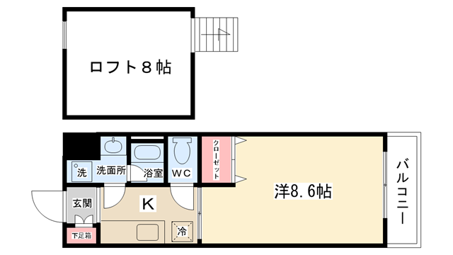 間取り内訳 | 洋室8.6帖 | 駐車場 | 敷地内あり 8,000円 |