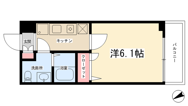 | 間取り内訳 | K2.5帖・洋室6.1帖 | 駐車場 | なし | ||||