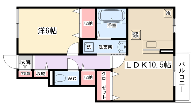 | 間取り内訳 | LDK10.5帖・洋室6帖 | 駐車場 | 敷地内あり 7,700円 | ||||