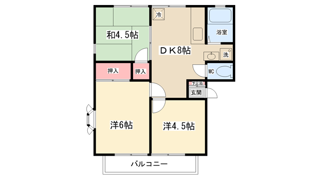 | 間取り内訳 | DK8帖・洋室4.5帖・和室6帖・和室4.5帖 | 駐車場 | 敷地内あり 7,216円 | ||||
