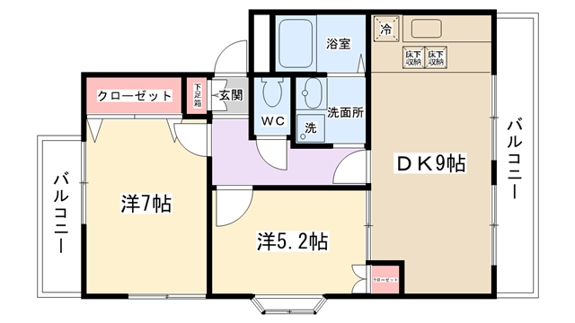 | 間取り | 2DK | 専有面積 | 53.1㎡ | 構造 | RC | 築年数 | 平成12年8月 |