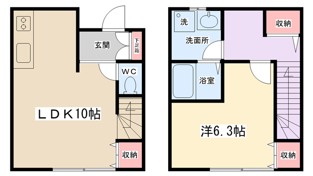| 間取り内訳 | 洋室6.3帖・LDK10帖 | 駐車場 | 敷地内あり(1台分付き) | ||||