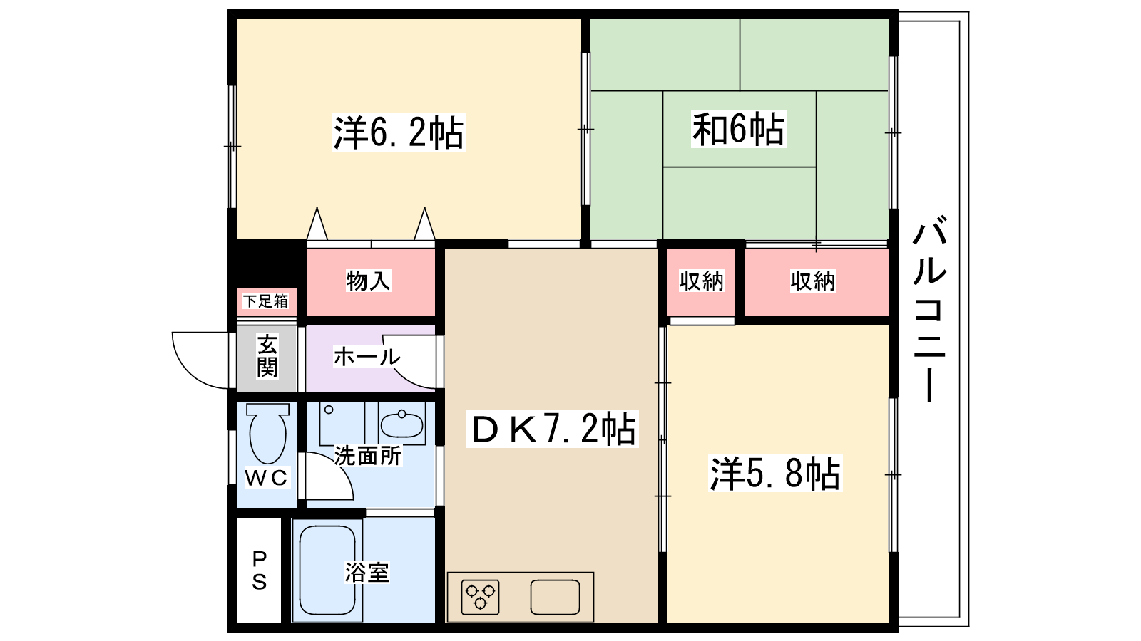 | 間取り内訳 | DK7.2帖・洋室5.8帖・洋室6.9帖・和室6帖 | 駐車場 | 敷地内あり 11,000円 | ||||