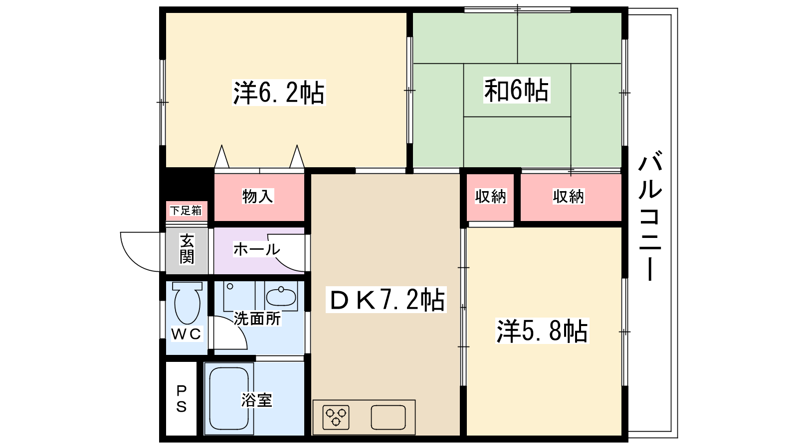 | 間取り内訳 | DK7.2帖・洋室5.8帖・洋室6.9帖・和室6帖 | 駐車場 | 敷地内あり 11,000円 | ||||