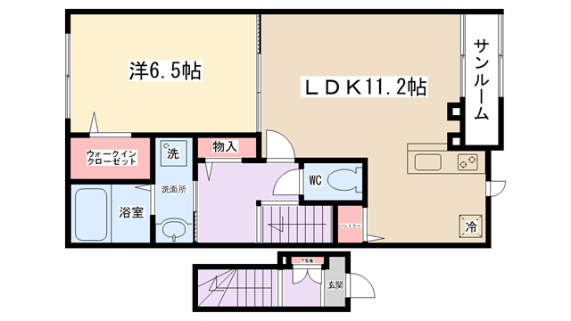 | 間取り内訳 | LDK11.2帖・洋室6.5帖 | 駐車場 | 敷地内あり 7,700円 | ||||