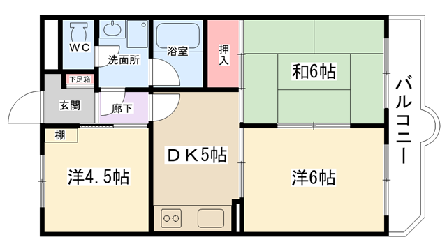 | 間取り内訳 | DK5帖・洋室6帖・洋室4.5帖・和室6帖 | 駐車場 | なし | ||||
