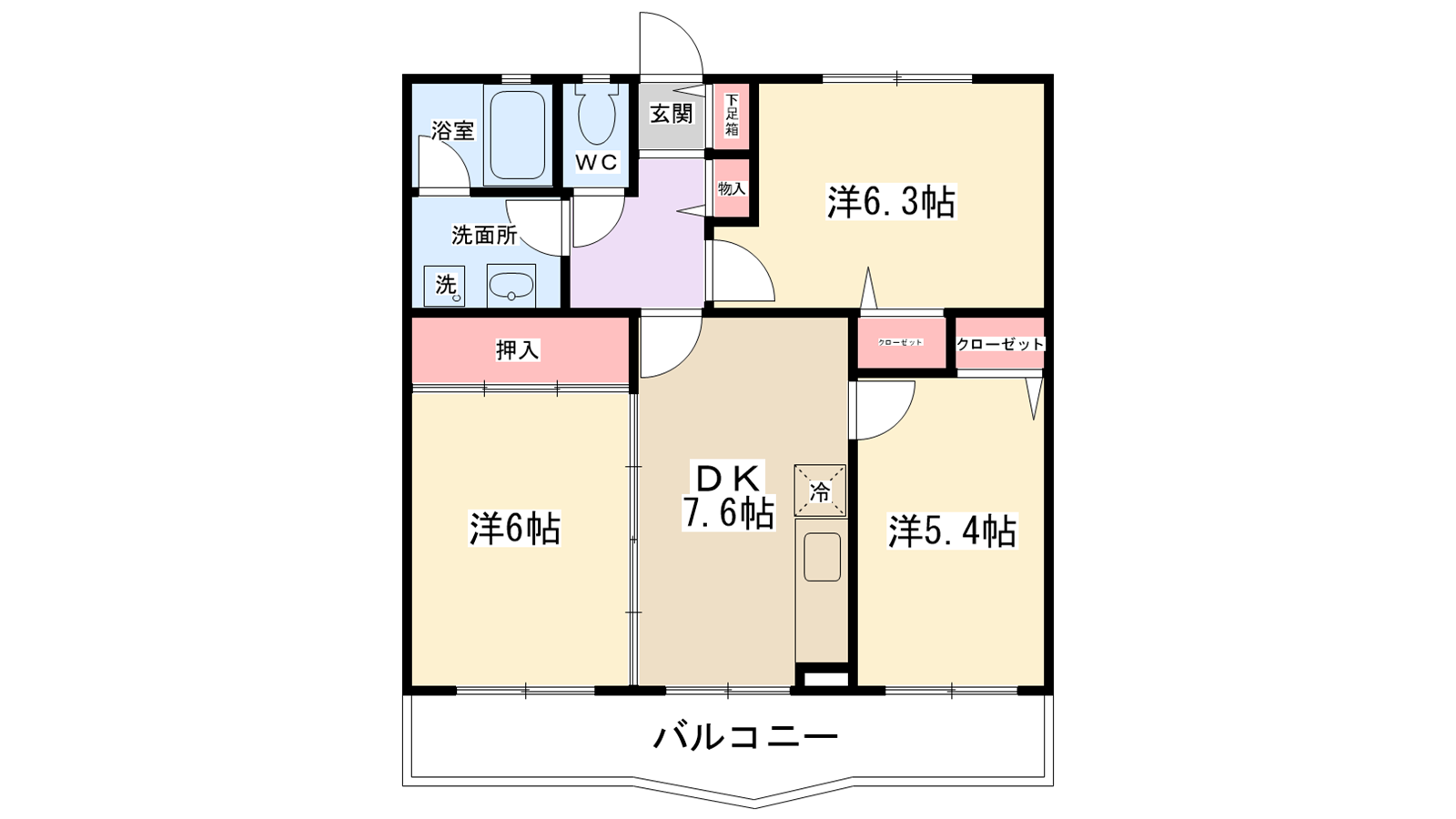 | 間取り内訳 | DK7.6帖・洋室6.3帖・洋室5.4帖・和室6帖 | 駐車場 | 敷地内あり 9,900円 | ||||