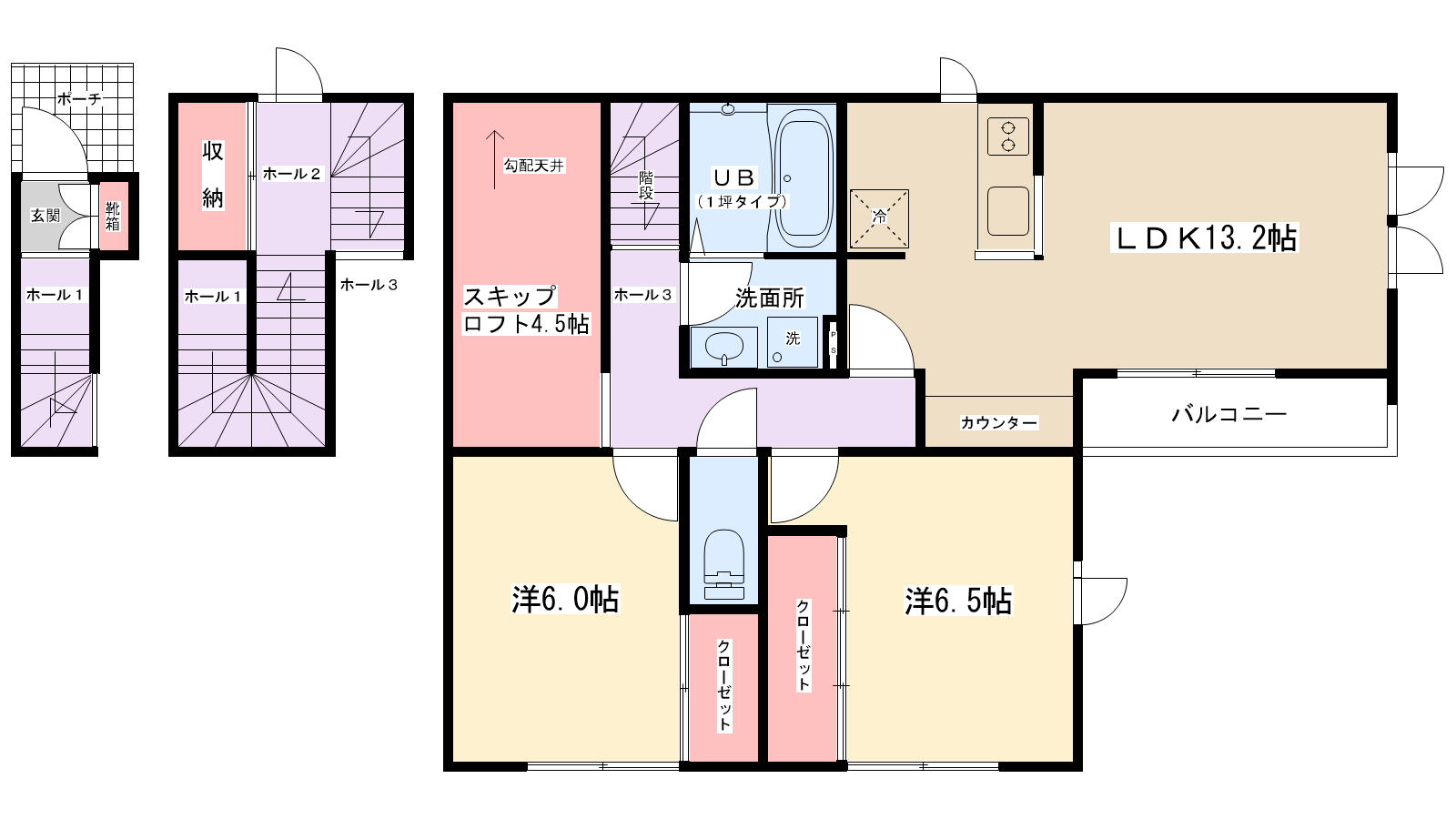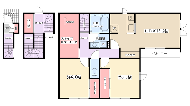 | 間取り内訳 | LDK12.2帖・洋室6.5帖・洋室6帖 | 駐車場 | 敷地内あり 6,600円 | ||||