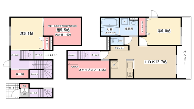 | 間取り内訳 | LDK12.7帖・洋室6.1帖・洋室6帖 | 駐車場 | 敷地内あり 6,600円 | ||||
