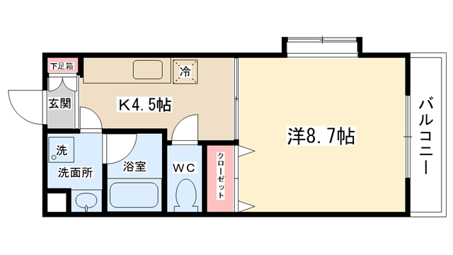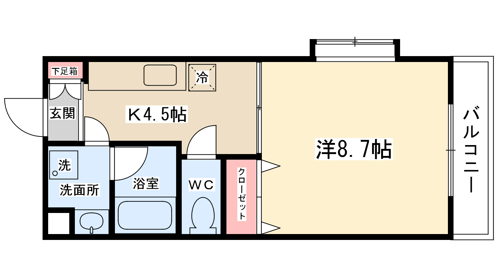 | 間取り内訳 | 洋室8.7帖・K4.5帖 | 駐車場 | 敷地内あり 8,000円 | ||||