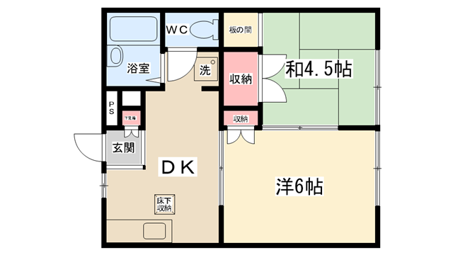 | 間取り内訳 | 洋室6帖・和室4.5帖 | 駐車場 | なし | ||||