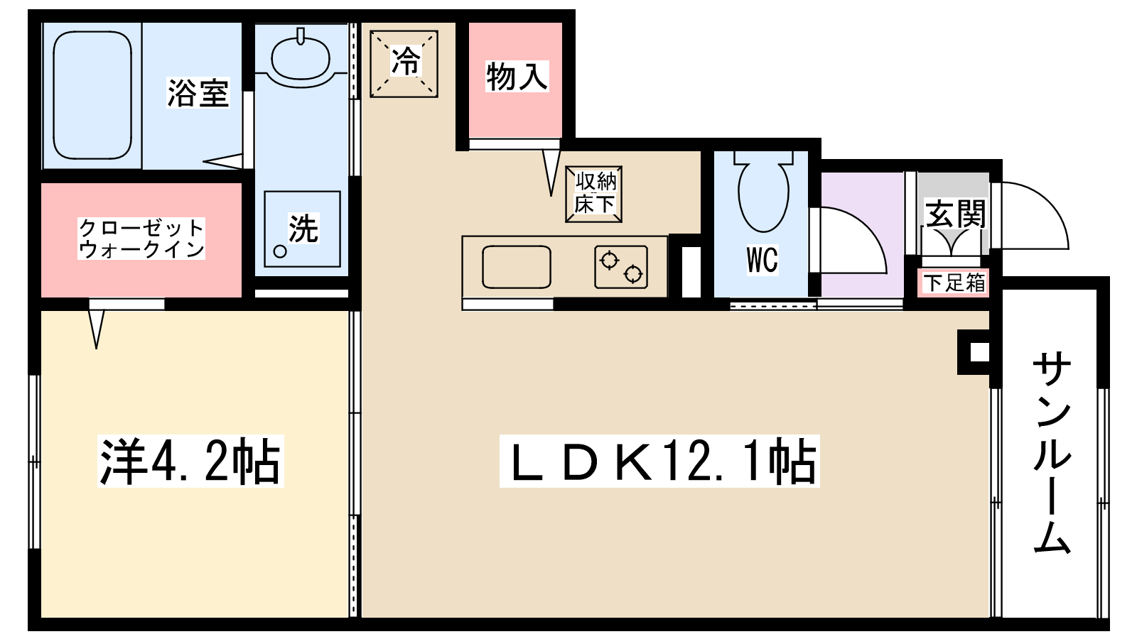 | 間取り内訳 | LDK12.1帖・洋室4.2帖 | 駐車場 | 敷地内あり 7,700円 | ||||