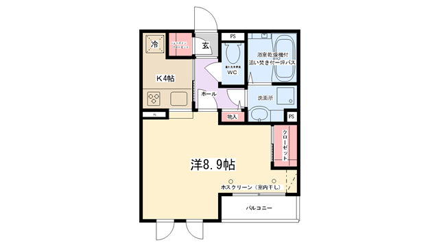 | 間取り内訳 | 洋室8.9帖・K4帖 | 駐車場 | なし | ||||