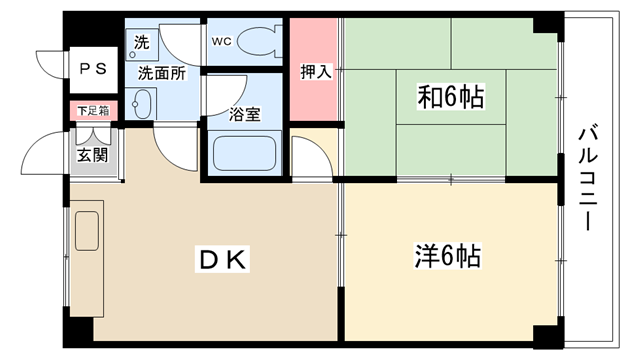 | 間取り | 2DK | 専有面積 | 42.42㎡ | 構造 | RC | 築年数 | 平成3年3月 |