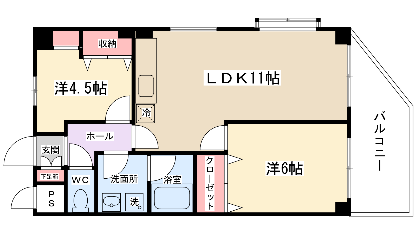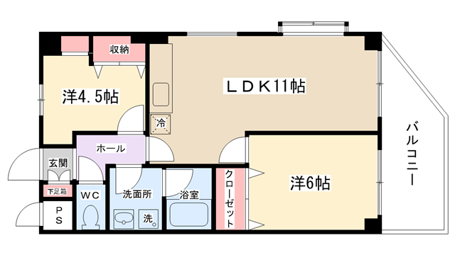 | 間取り内訳 | LDK11帖・洋室6帖・洋室4.5帖 | 駐車場 | 敷地内あり 11,000円 | ||||
