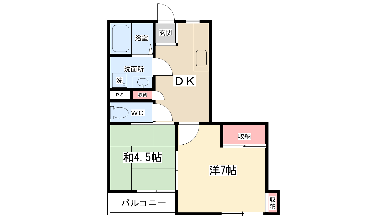 | 間取り内訳 | 和室4.5帖・洋室7帖 | 駐車場 | なし | ||||