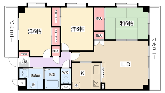 | 間取り | 3LDK | 専有面積 | 73.26㎡ | 構造 | RC | 築年数 | 平成7年7月 |