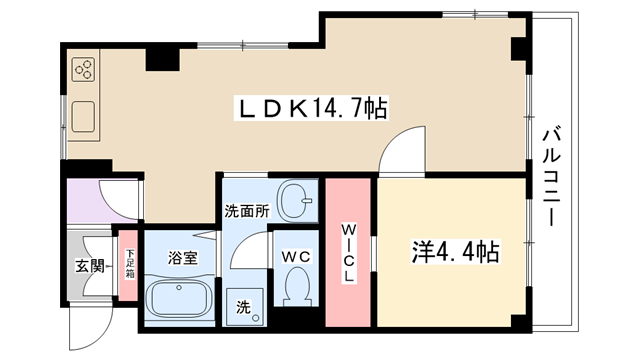 | 間取り内訳 | LDK14.7帖・洋室4.4帖 | 駐車場 | 敷地内あり 11,000円 | ||||