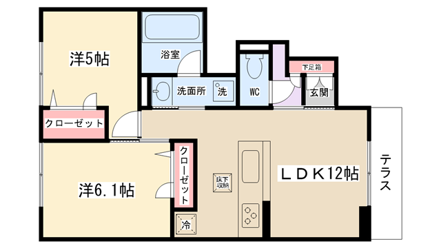 | 間取り内訳 | LDK12帖・洋室6.1帖・洋室5帖 | 駐車場 | 敷地内あり 8,800円 | ||||