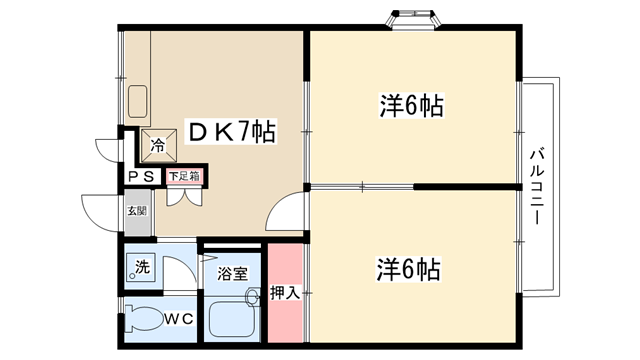 | 間取り内訳 | 洋室6帖・洋室6帖・DK7帖 | 駐車場 | 敷地内あり 6,600円 | ||||