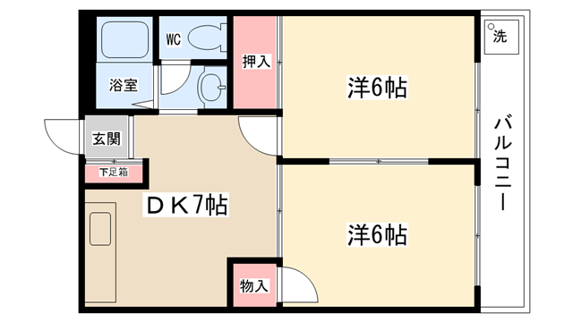 | 間取り内訳 | DK7帖・洋室6帖・洋室6帖 | 駐車場 | なし | ||||