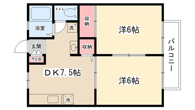 | 間取り内訳 | DK7.5帖・洋室6帖・洋室6帖 | 駐車場 | なし | ||||
