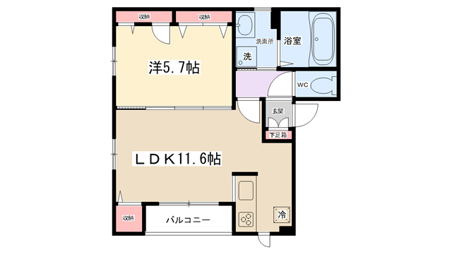 | 間取り内訳 | LDK11.6帖・洋室5.7帖 | 駐車場 | 敷地内あり 7,700円 | ||||