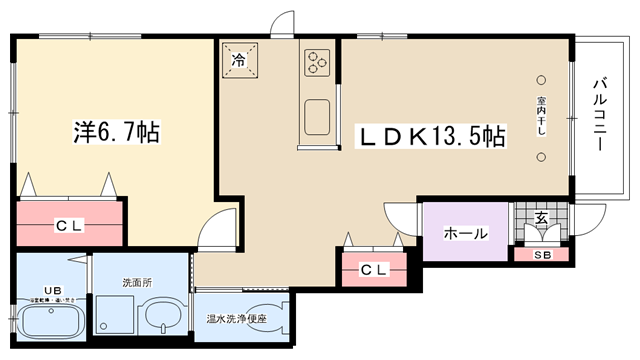 | 間取り内訳 | LDK13.5帖・洋室6.7帖 | 駐車場 | 敷地内あり(1台分付き) | ||||