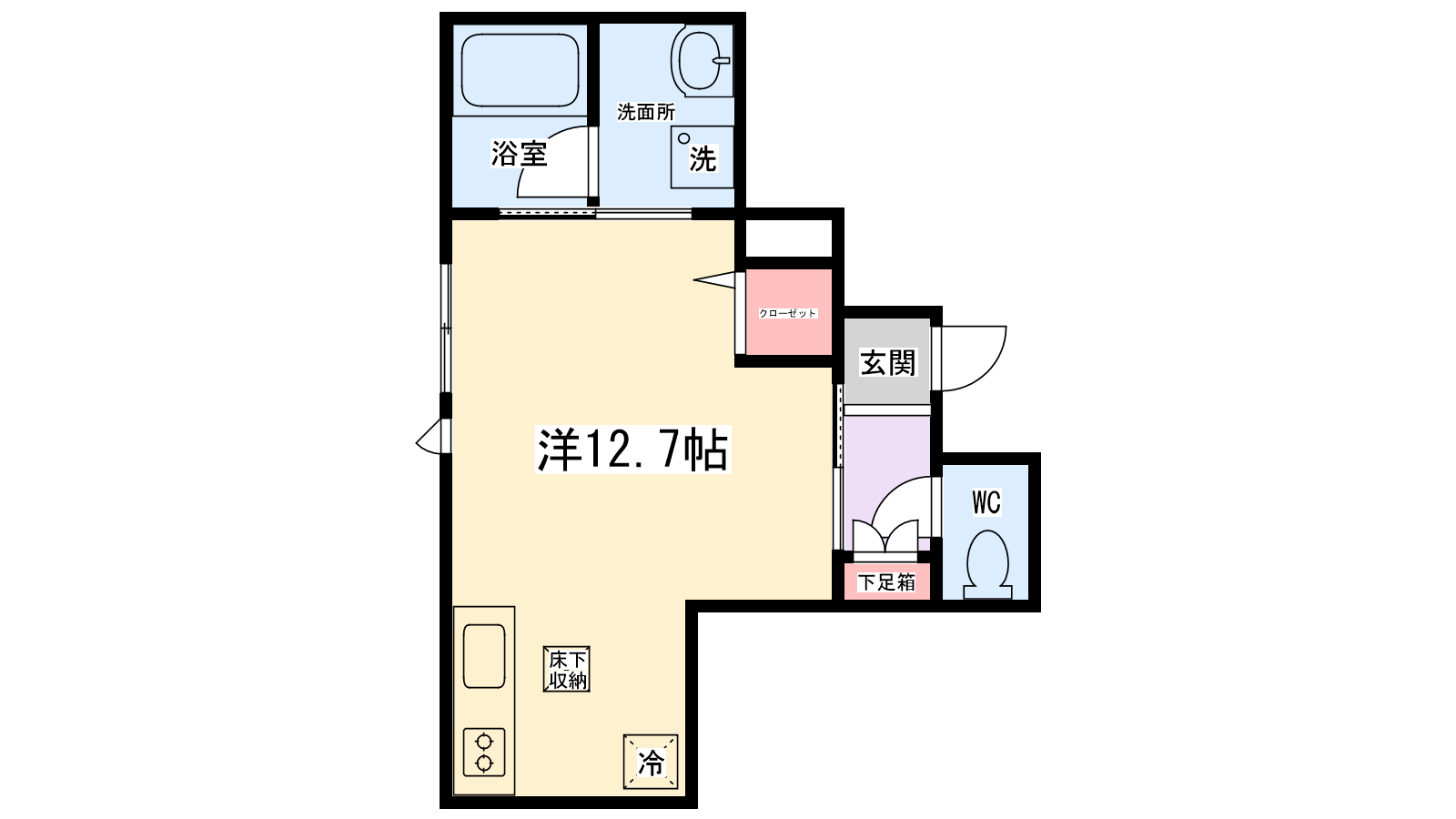 | 間取り内訳 | 洋室12.7帖 | 駐車場 | なし | ||||