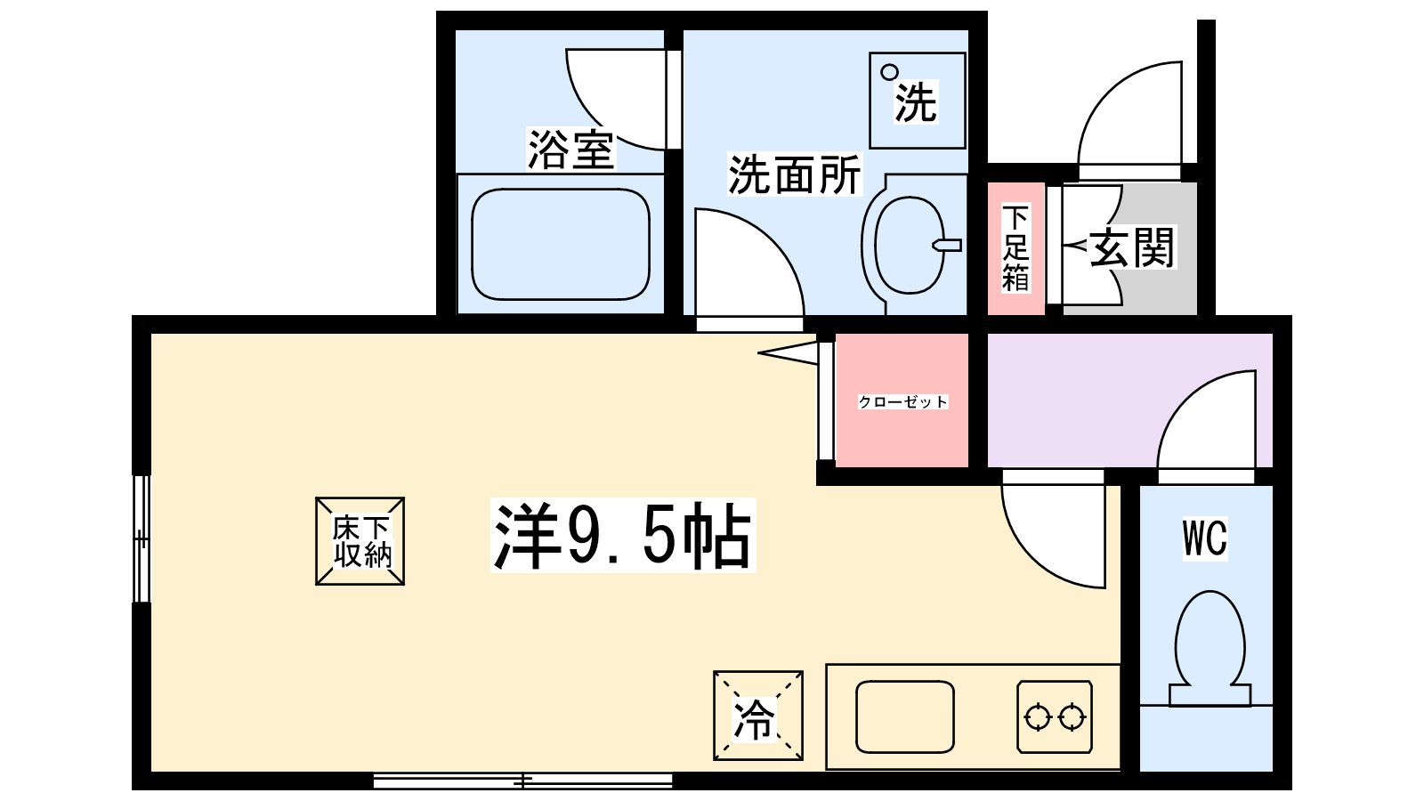 | 間取り内訳 | 洋室9.5帖 | 駐車場 | なし | ||||