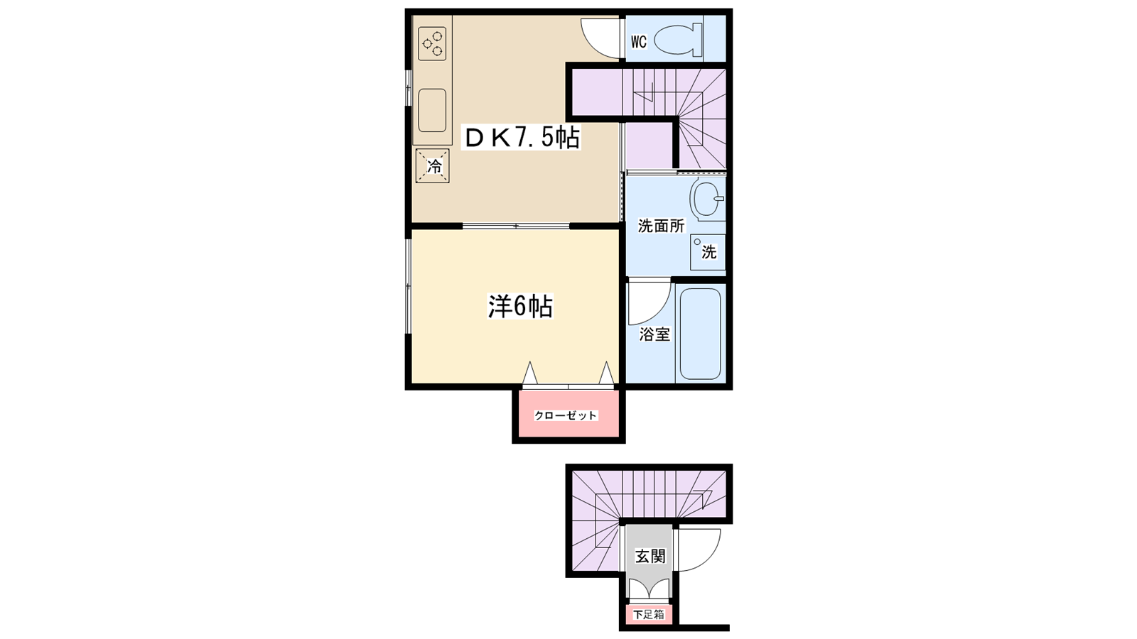 | 間取り内訳 | DK7.5帖・洋室6帖 | 駐車場 | なし | ||||