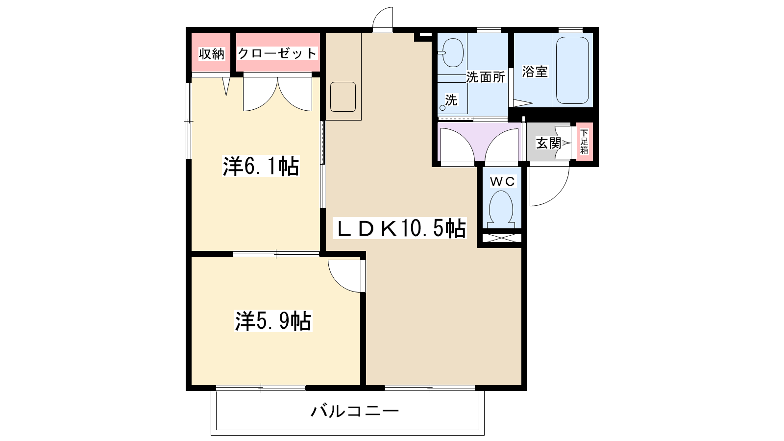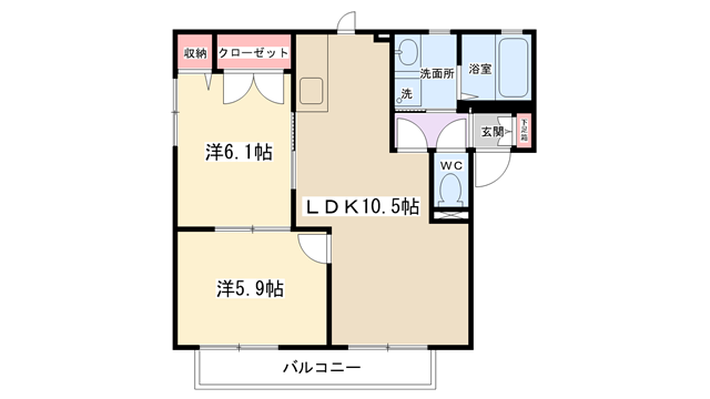 | 間取り内訳 | LDK10.5帖・洋室6.1帖・洋室5.9帖 | 駐車場 | なし | ||||