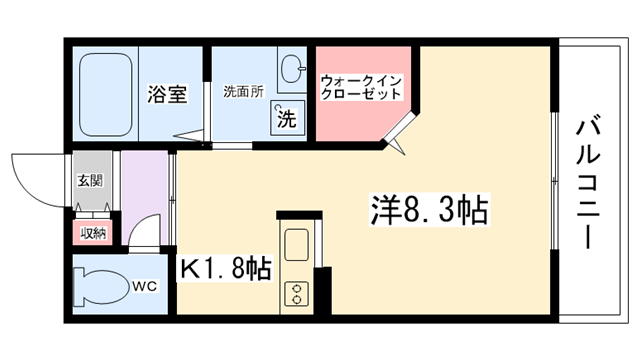 | 間取り内訳 | 洋室8.3帖・K1.8帖 | 駐車場 | なし | ||||
