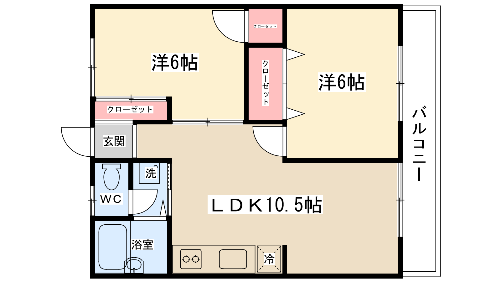 | 間取り内訳 | 洋室6帖・洋室6帖・LDK10.5帖 | 駐車場 | 敷地内あり 6,600円 | ||||