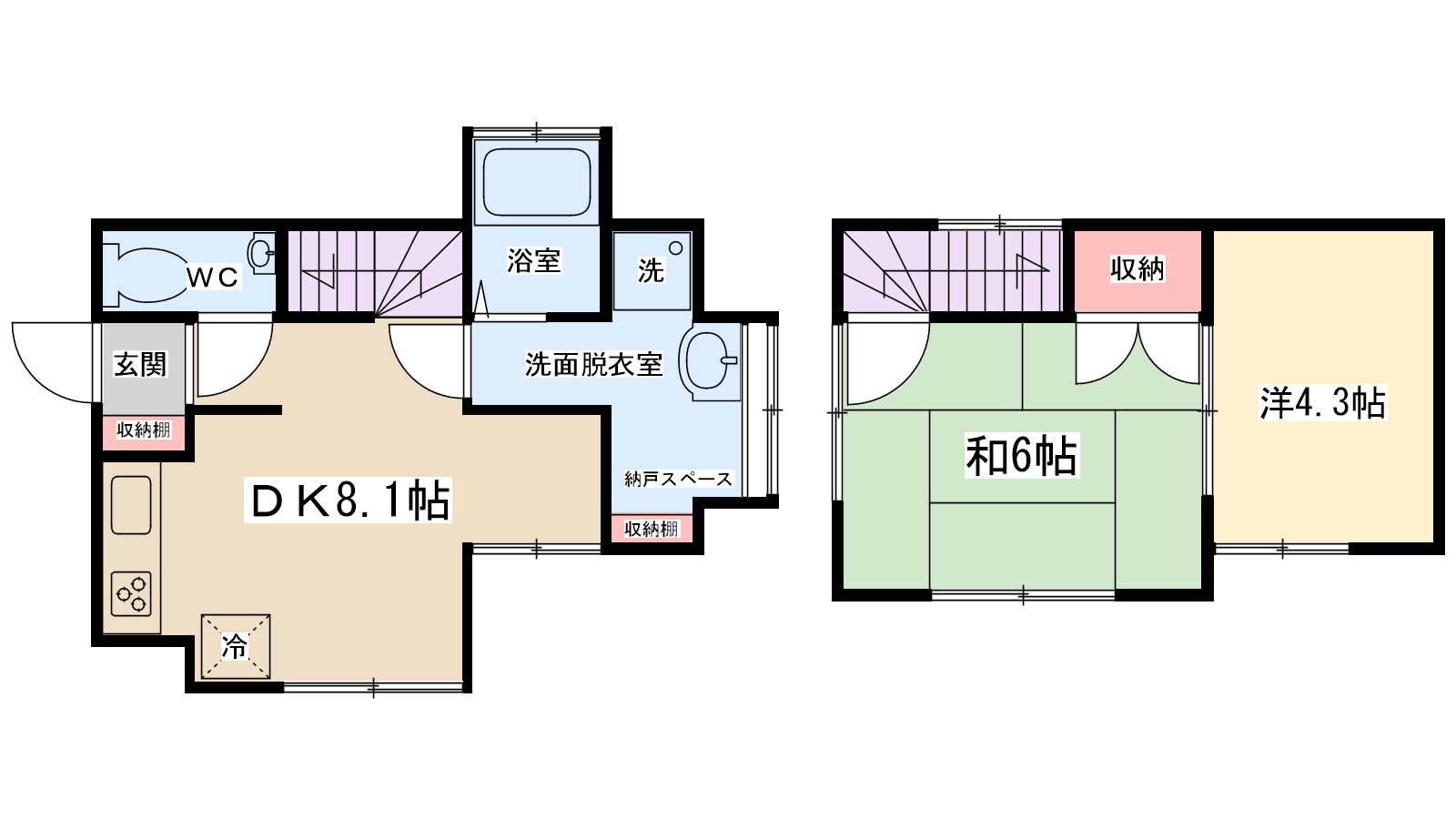 | 間取り | 2DK | 専有面積 | 45.95㎡ | 構造 | 木造 | 築年数 | 昭和41年5月 |