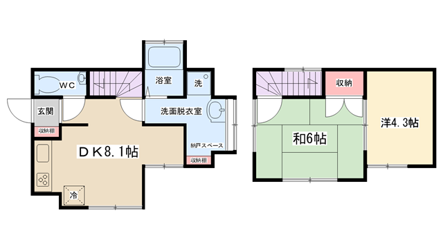 | 間取り内訳 | DK8.1帖・洋室6帖・洋室4.1帖 | 駐車場 | 敷地内あり(1台分付き) | ||||