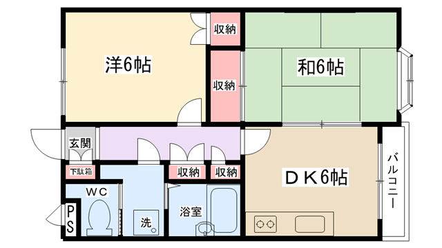 | 間取り内訳 | 洋室6帖・和室6帖・DK6帖 | 駐車場 | なし | ||||