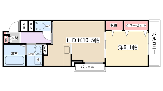 | 間取り内訳 | LDK10.5帖・洋室6.1帖 | 駐車場 | 敷地内あり 8,800円 | ||||