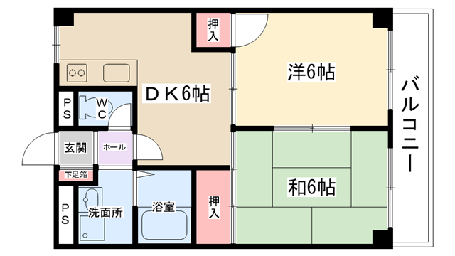 | 間取り内訳 | 洋室6帖・和室6帖・DK6帖 | 駐車場 | 敷地内あり 8,000円 | ||||
