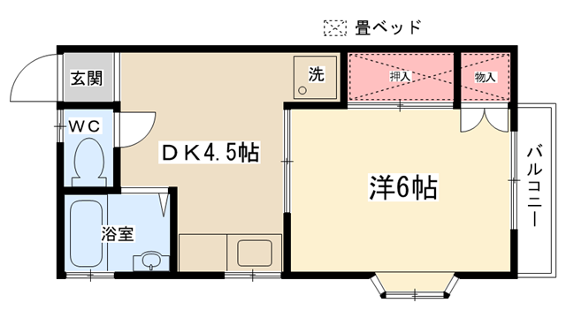 | 間取り内訳 | 洋室6帖・DK4.5帖 | 駐車場 | なし | ||||
