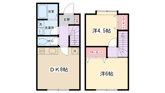 | 間取り内訳 | DK8帖・洋室4.5帖・洋室6帖 | 駐車場 | なし | ||||