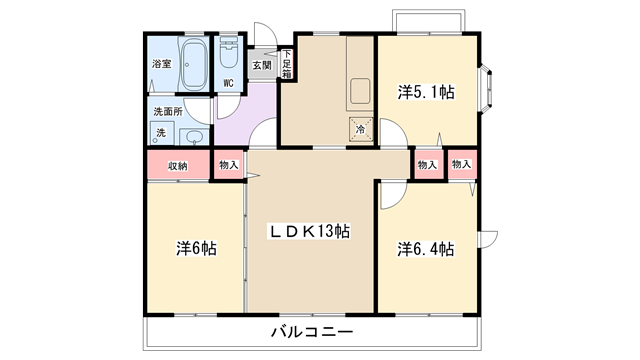 | 間取り内訳 | LDK13帖・洋室6.4帖・洋室5.1帖・洋室6帖 | 駐車場 | 敷地内あり 8,800円 | ||||